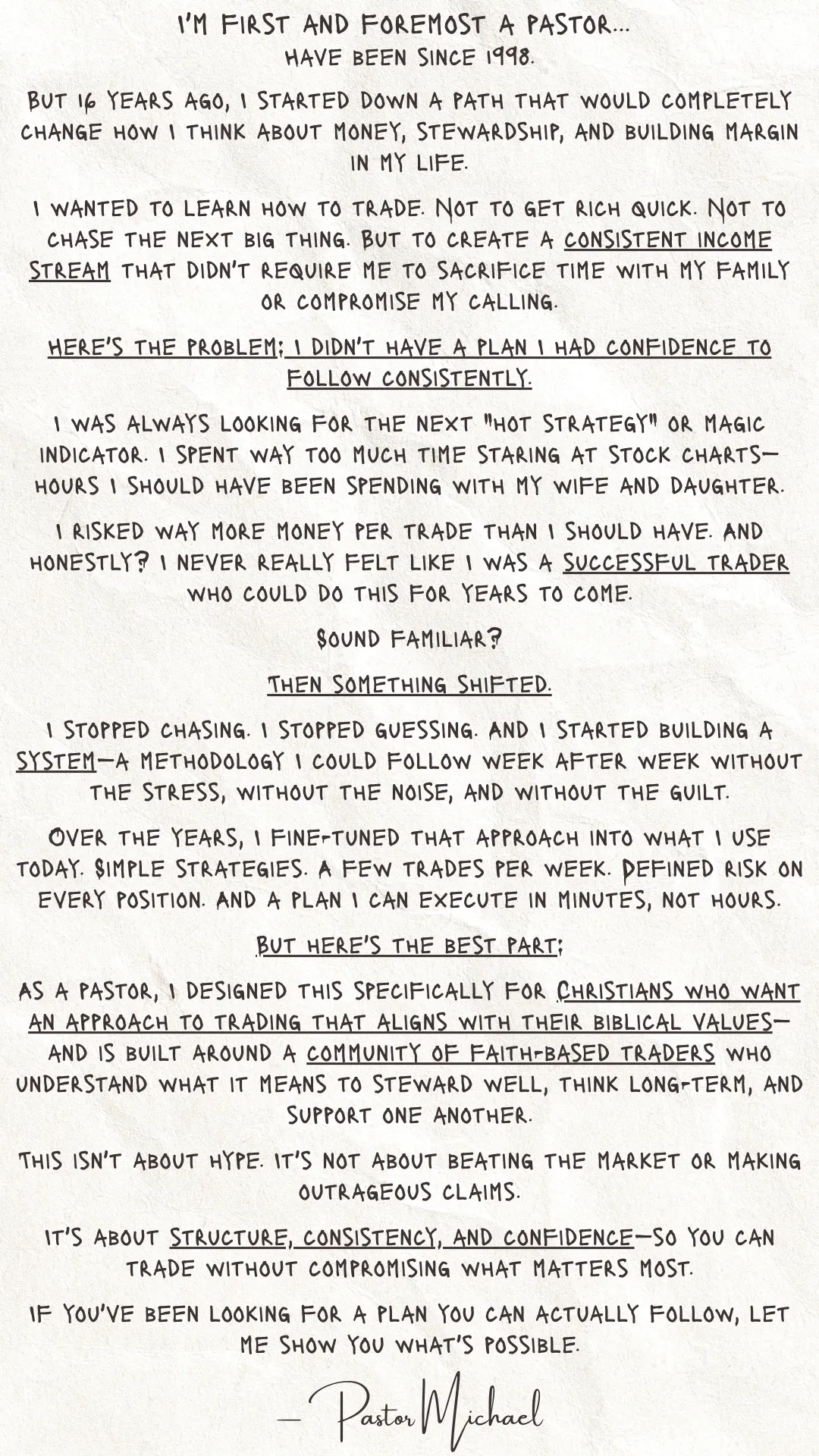 Built by a pastor, for Christian leaders. My system makes investing simple, strategic, and aligned with biblical principles.